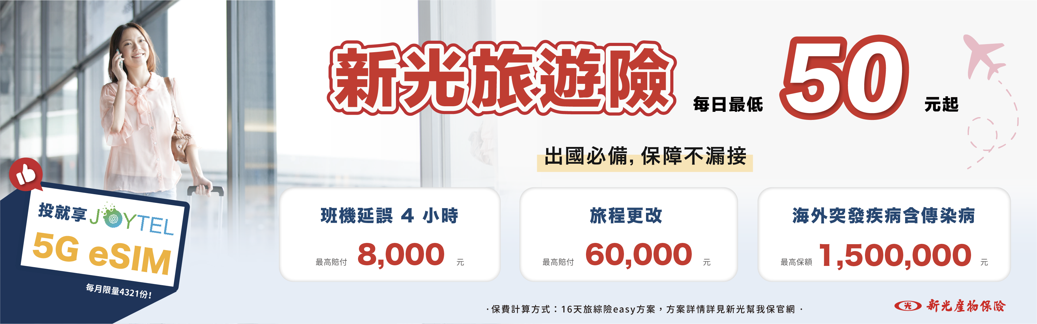 - 本活動所有獎項,僅透過新光產險網路投保國外旅平+不便險保險者,才享有活動資格